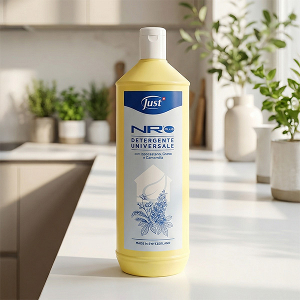 Detergente Universale NR® Plus è l’iconico detergente per la casa Just adatto per moltissime necessità. È una formula super concentrata – si usa in piccole dosi, diluito – e adatta per pulire a fondo e igienizzare pavimenti, stoviglie, tessuti e altre superfici. Un prodotto così versatile che è amico anche dell’ordine: non servono più decine flaconi di detergenti diversi sparsi per la casa, perché Detergente Universale NR® Plus può essere utilizzato per le principali esigenze di pulizia in cucina, bagno, lavanderia e in tutti gli altri ambienti domestici.